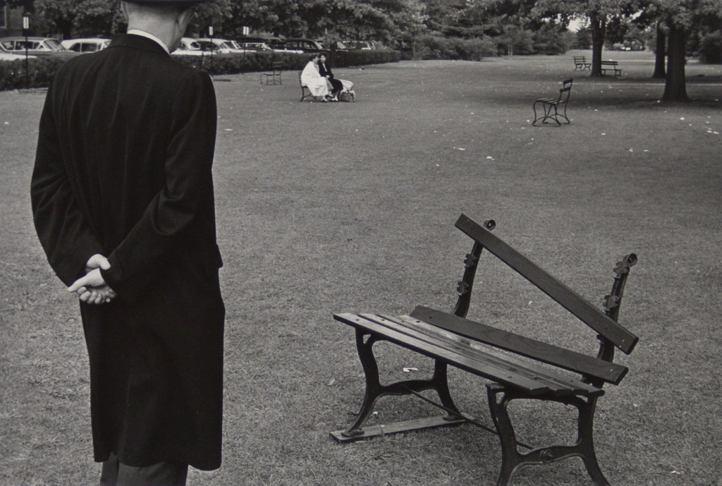 On 20 September 1962, in New York, after all those long years of snubs and slights, Kertész took a photograph that summarized his own situation – or his own perception of his situation – perfectly [36]. Near the top of the frame two women are seated on a bench; in the distance is scattered an assortment of empty chairs and benches. A third of the frame is completely dominated by the back of a man in an overcoat looking down at a broken park bench. It is quite possible that after enough knocks and disappointments your favourite bench in a park could mean almost as much to you as a pet dog or a wife once did. Pathetic? That’s the point: how sad it is that there are people for whom a bench could mean the difference between melancholy and breakdown. ‘Think of being them,’ Larkin urged: